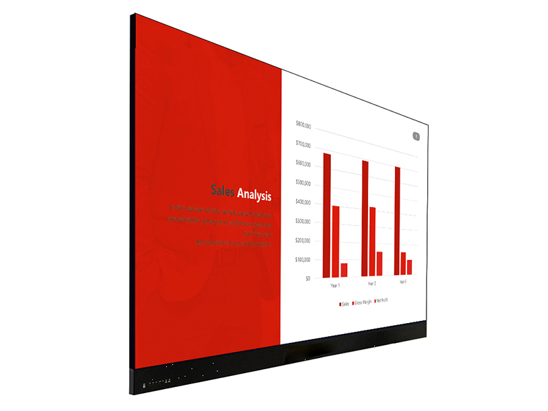 Fine Pitch DV-LED-skärmväggen är en allt-i-ett-lösning med avancerad LED-teknik och en Android-baserad dator. Den har integrerade 30W-högtalare, en slimmad och lätt design, frontmonterade portar (HDMI och USB), trådlös spegling samt enkelt underhåll från framsidan. Den erbjuder hög bildkvalitet, enkel installation och smidig service.