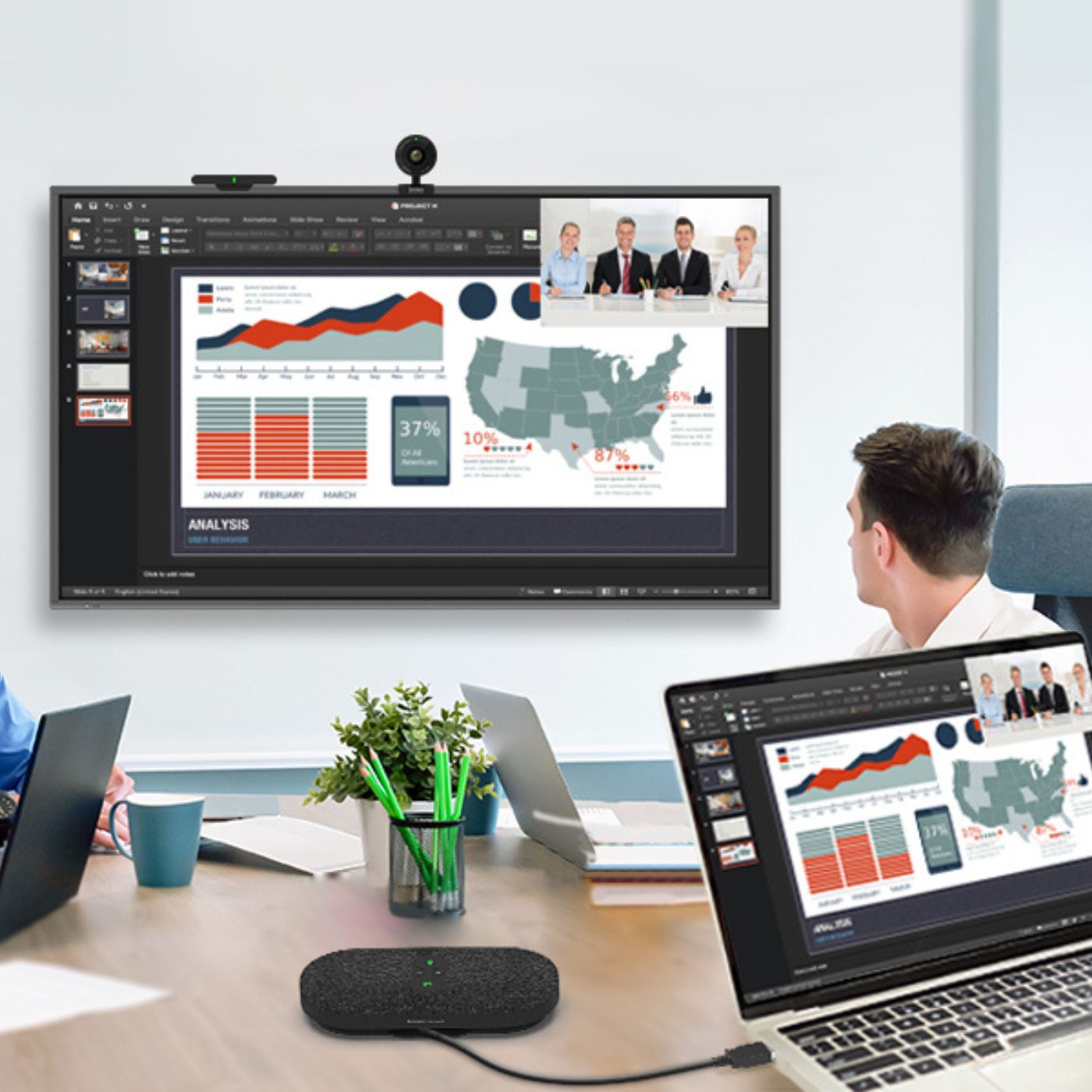 Innex Connect-setet innehåller en högtalartelefon och en mottagare och är fullspäckad med funktioner för att förbättra din konferensupplevelse. Med bara ett klick kan du enkelt dela din bärbara dators skärm till en stor skärm så att alla i rummet kan se. Få tillgång till din konferenskamera trådlöst utan att oroa dig för längden på kabeln. Anslut varje del av din kringutrustning för videokonferens, allt du behöver är att ansluta en enda kabel till din bärbara dator. Njut av friheten och bekvämligheten med ett rörigt konferensutrymme med Innex Connect.