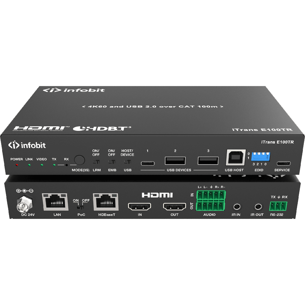 - Dubbelriktad IR-, RS-232- och 1G Ethernet-signalgenomföring