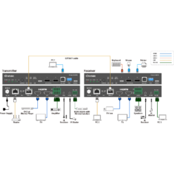 - 4K60/4K30/1080P signalöverföringsavstånd upp till 328ft/100m via en enda CAT6A/7-kabel (HDBT Standard Mode)