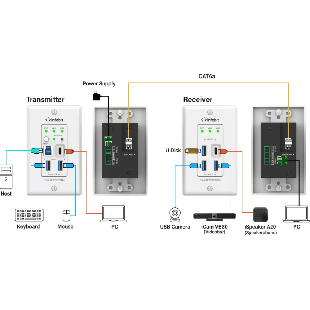 - Förlängning av USB 3.2 Gen 1 upp till 100m/328ft över CAT6a-kabel