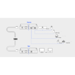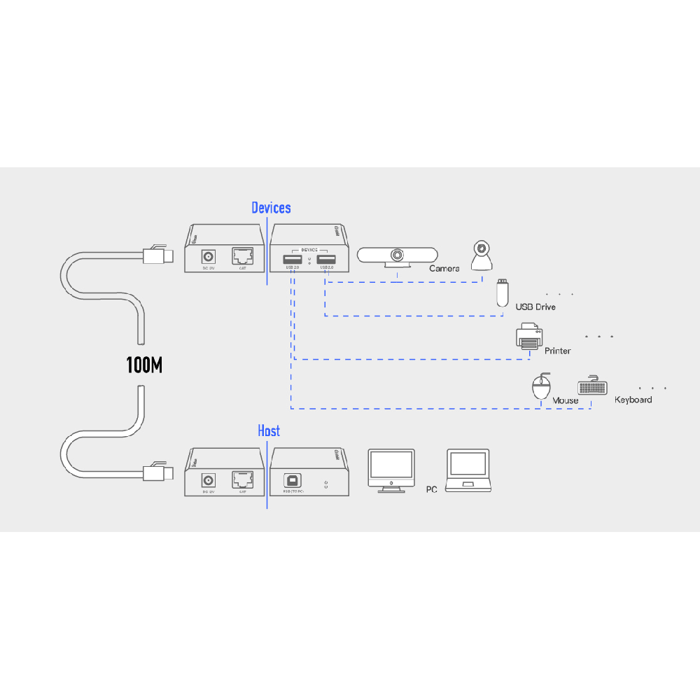 - Stöder förlängning av avstånd upp till 100 meter via CAT 5e/6-kabel