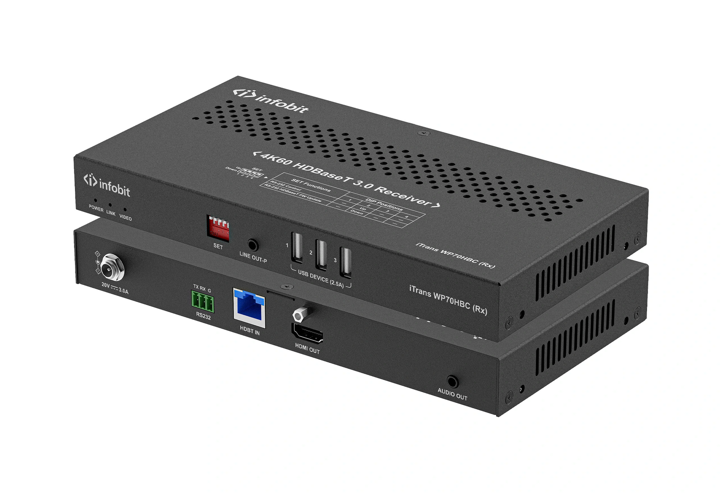 iTrans WP70HBC är en väggpanel-sändare baserad på HDBaseT 3.0 som kombinerar USB-C, HDMI och USB-B-anslutningar. Den stöder 4K@60Hz 4:4:4-video, KVM-funktion, USB-dataöverföring och upp till 60 W laddning via USB-C. Överföringsavståndet är upp till 40 m för 4K@60Hz och 70 m för 4K@30Hz via Cat 6A-kabel. Produkten har även analog ljudgenomgång, RS232-styrning, CEC-displaykontroll och PoH+ PD-strömförsörjning från mottagaren. Passar för professionella AV-installationer i mötesrum och konferensmiljöer.
